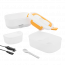 en een bestekvak waarin ook een lepel zit. Bovendien heeft hij 4 veiligheidsvergrendellipjes en een inklapbare draaggreep om hem gemakkelijk te dragen.