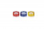 - 3 x 3 meter in de kleuren blauw, rood en geel